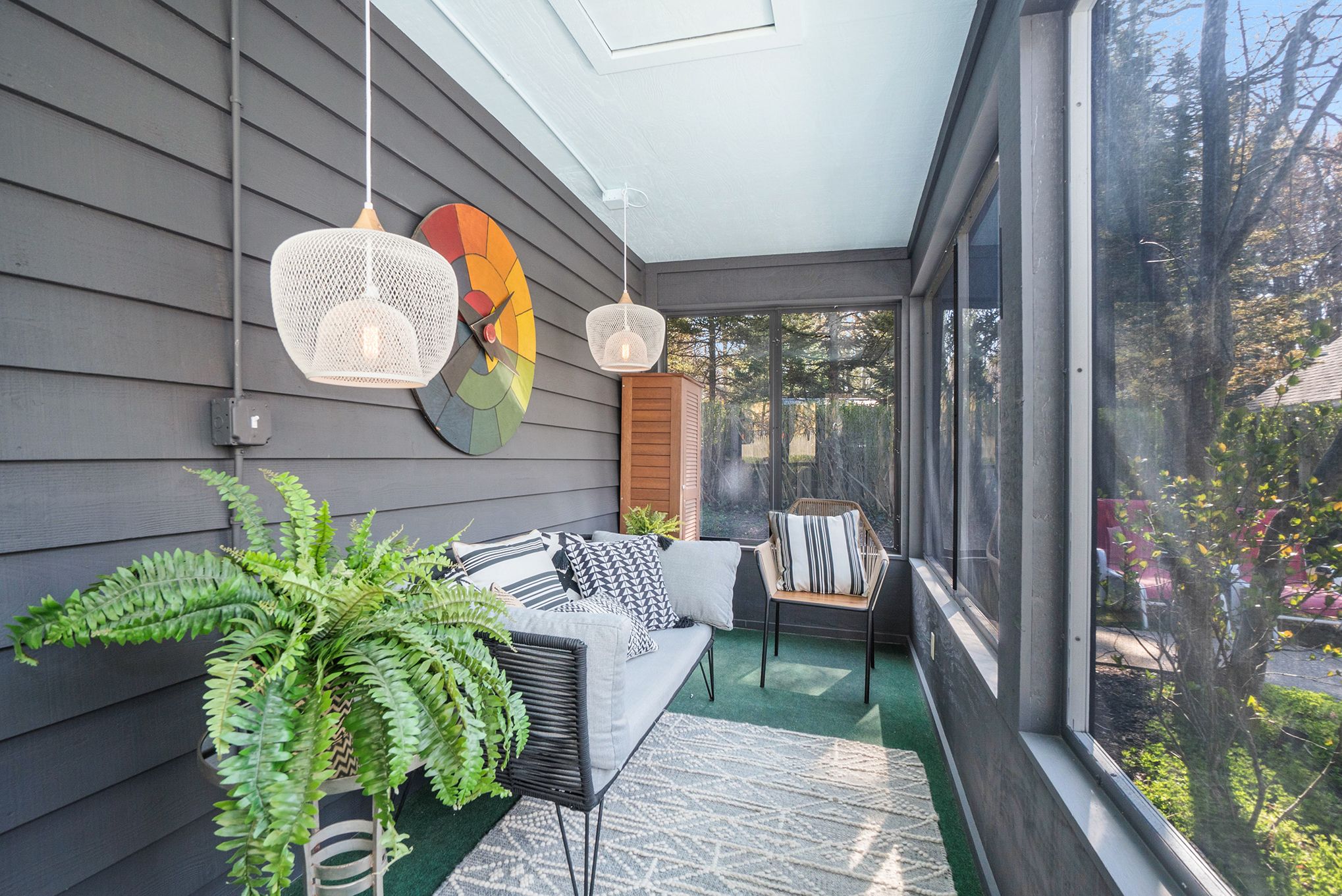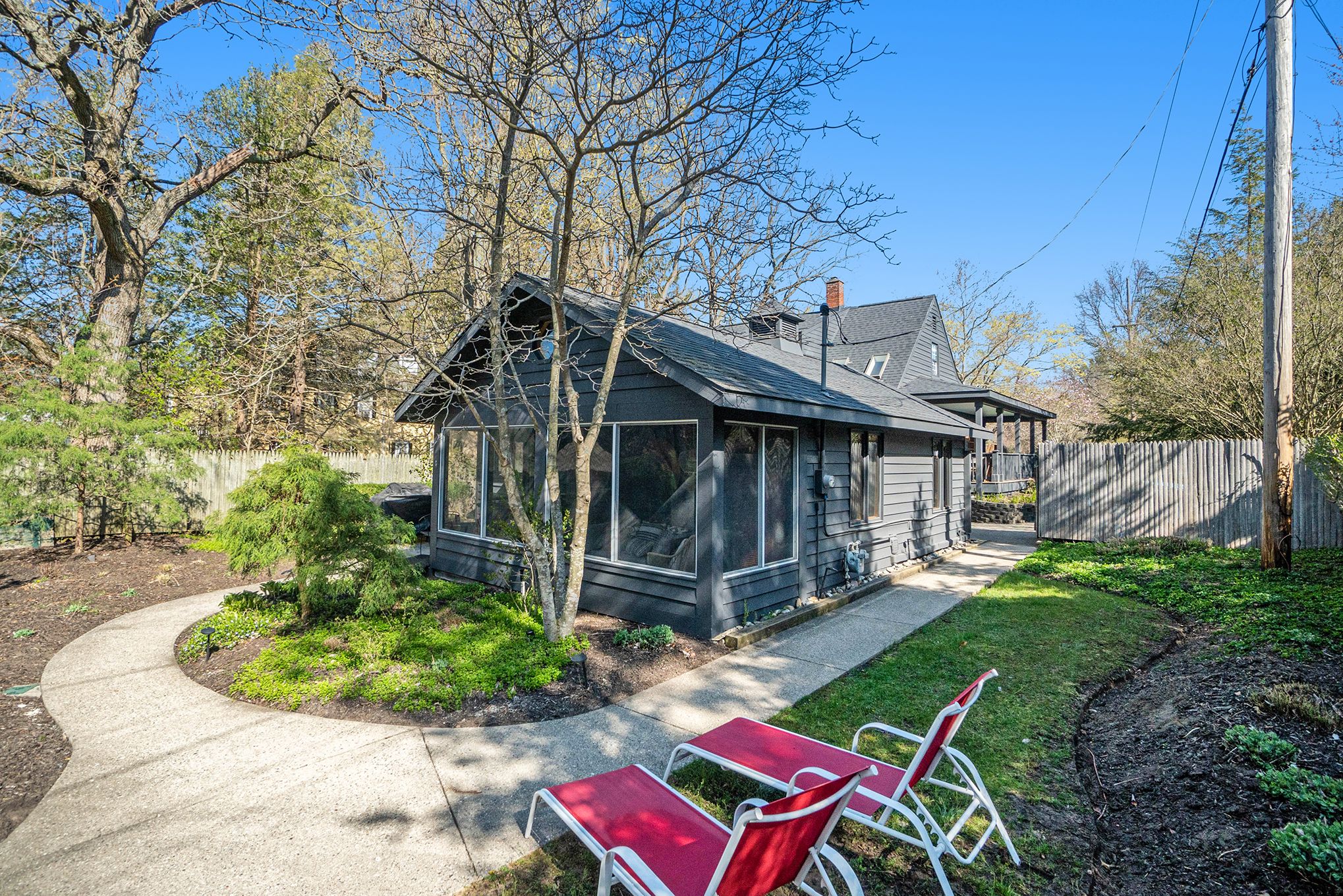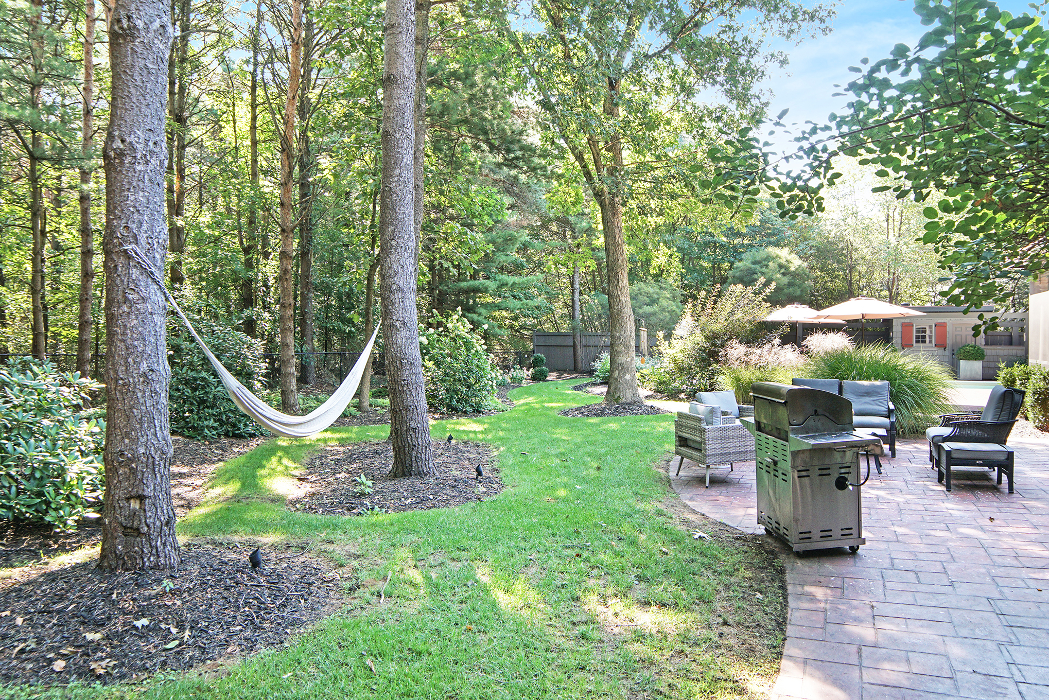 The natural feel of the landscaping and inclusion of tall skinny pines create a private wooded setting that will draw and keep you outdoors. Numerous places to lounge throughout the backyard make it easy to find a quiet spot by yourself or gather with family and friends for barbequing, games and drinks. Enjoy a cool breeze on the screened porch during the day and find yourself around the fire pit in the evening. Make sure to experience the hot tub and did we mention the pool?