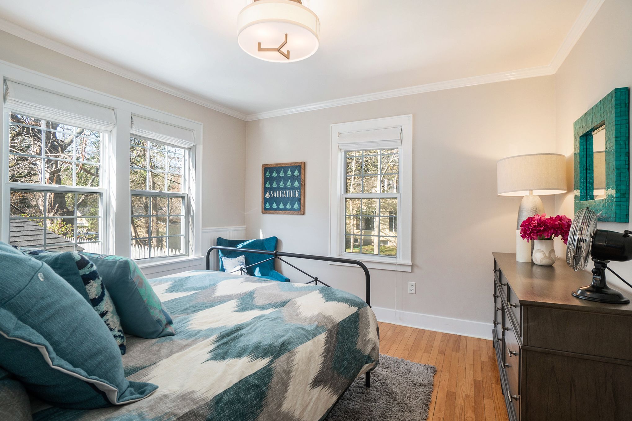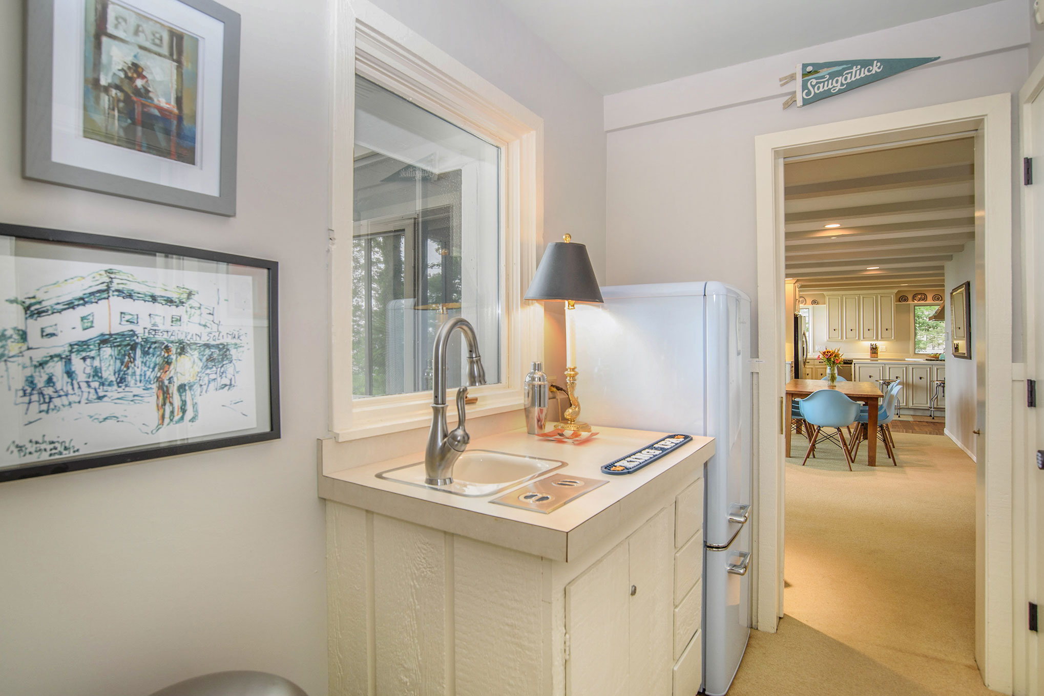 Our property- comprised of a main house and an adjacent guest house- is located between Kalamazoo Lake & Lake Michigan. Both houses accommodate up to 13 people. You can hear the roar of Lake Michigan because it’s only short walk away. Oval Beach is an easy drive/bike 1.5mi ride. The downtowns of Douglas & Saugatuck are under 2mi. Extended stays are welcome. Strong Wi-Fi (for work/school) & our cook’s kitchen will make your escape to a place you’ll never want to leave. The Main Cottage sleeps 9- with 2 full bathrooms, and the Guest cottage sleeps 4, with its own bathroom and kitchen.