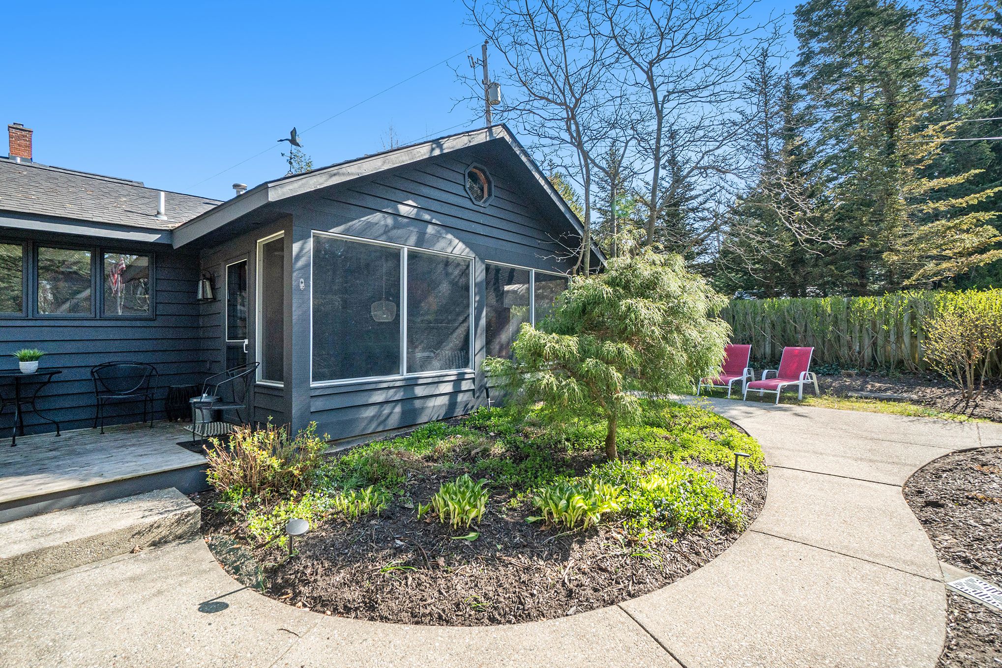 Recently featured in TimeOut Chicago’s “Best of” series, this amazing oasis accommodates up to 12, has a private pool, hot tub, and basketball court. A mile from downtown Saugatuck.